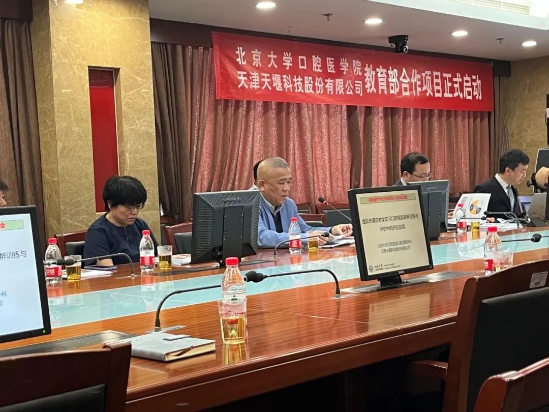 2023年4月24日,在這個(gè)春光明媚的日子里,北京大學(xué)口腔醫(yī)院(北大口腔)與天津天堰科技股份有限公司(天堰科技)召開“虛擬仿真在教學(xué)實(shí)習(xí)口腔局部麻醉訓(xùn)練與評估中的開發(fā)應(yīng)用”項(xiàng)目啟動(dòng)會。北大口腔副院長李鐵軍、中華口腔醫(yī)學(xué)會副秘書長劉宏偉、北大口腔教育處長董美麗、虛擬仿真教研室主任侯建霞、口腔頜面外科副主任賀洋、天堰科技總經(jīng)理劉雁飛、天堰科技口腔事業(yè)部總經(jīng)理景穎等人出席,在項(xiàng)目總負(fù)責(zé)人崔念暉主任主持下,雙方展開了熱烈而有成效的會晤,確定該項(xiàng)目正式啟動(dòng)。